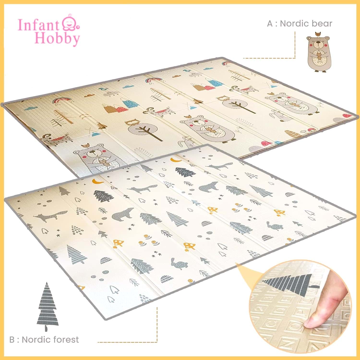 Infant Hobby Forest Oyun Matı 160x180x1 cm en üst derecede konfor ve kullanım kolaylığı sağlamak üzere tasarlanmıştır. Bebeklerin ve çocukların gelişimine zarar vermeyecek şekilde, güvenliği kanıtlanmış çevre dostu malzemelerden üretilmiştir. Yumuşak dolgulu yapısı düşme ve darbelerde tamponlama görevi görür. Parlak ve eğlenceli desenleri çocuğun hayal gücünü uyarır, yaratıcılıklarını geliştirir ve mutlu hissetmelerini sağlar. Infant Hobby oyun matları gıdada kullanılabilir PE Film ile çevrelenmiş eğitici desenli şık tasarımlar sunmaktadır. Bebeğinizin sağlığını, yüzeyindeki PE Film ile korurken, eğitici desenler ile gelişimini destekler. İçerisinde bulunan çevre dostu XPE köpük sayesinde bebeğinizin, emekleme ve yürüme döneminde oluşabilecek tüm tehlikeleri ortadan kaldırır.